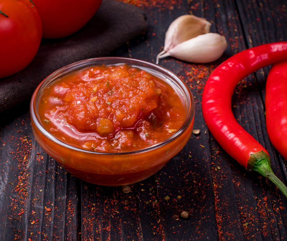 Ingredients: paprika, chili pepper, sugar, garlic, water, vinegar, salt. Lactose-free, gluten-free, VEGAN, E-free. Nutritional information: